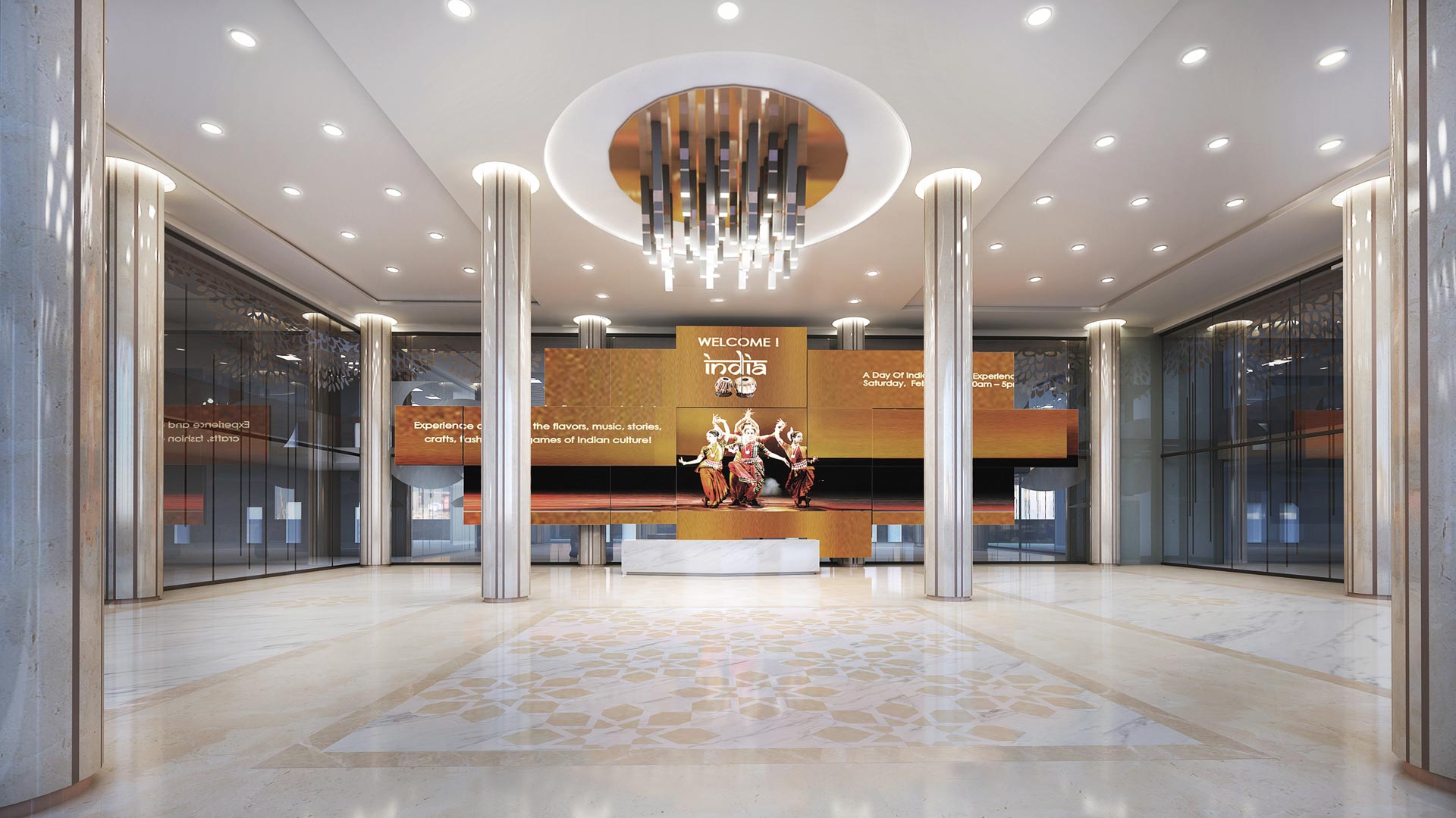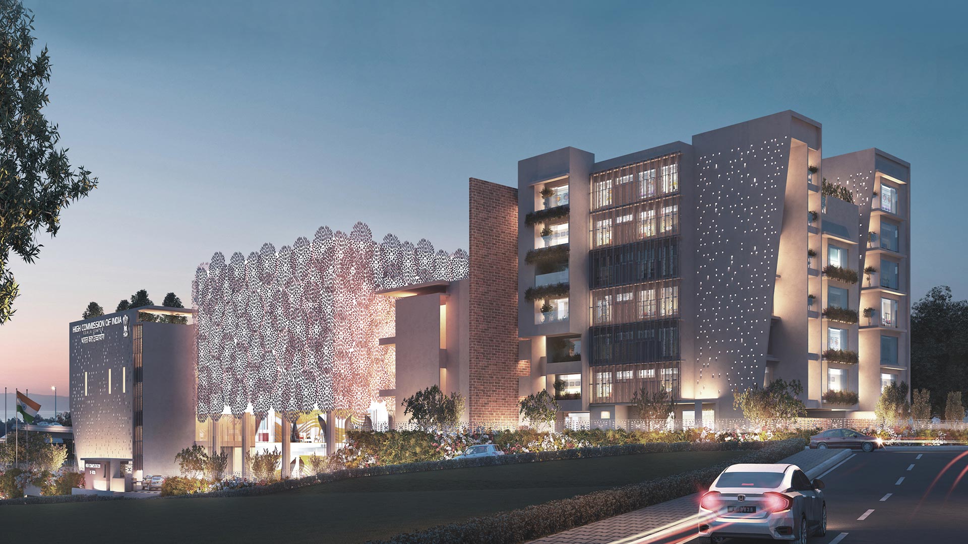The design objective is to create a positive and welcoming image of the High Commission, set a standard of design quality and to reflect the character and culture of India.