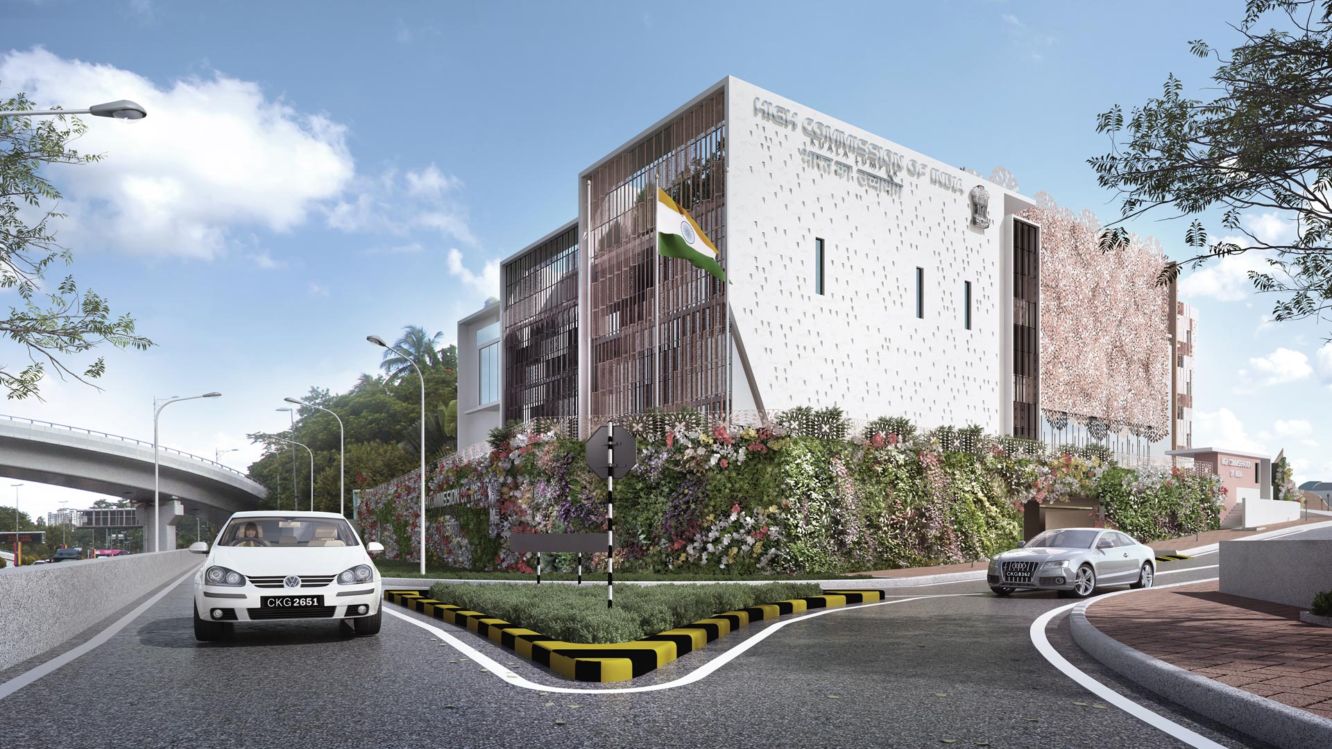 The overall architectural language is formal; with Indian artisans employed to show case distinct design character. An orchid garden wall facing Jalan Duta provides a Malaysian context to the whole assemble.