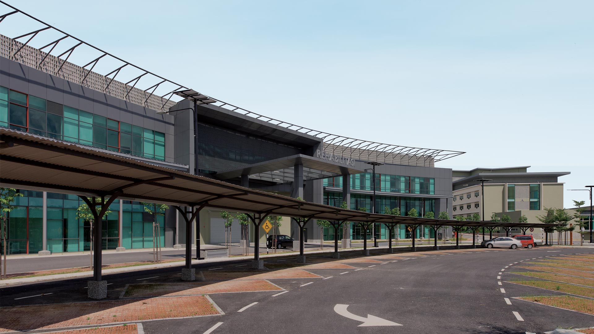 The Medical Rehabilitation Complex is the first stage in this journey. It is the most important and largest component in SOCSO Tun Razak Rehabilitation Centre with a floor area of 19,045 square meters.It has two main activities: therapies and non-therapy facilities. The therapies are speech and audio therapy, hydrotherapy, gymnasium, physiotherapy and occupational therapy while the non-therapy facilities are the administrative offices, assessment clinics and emergency, prosthetics, industrial rehab, day care and convalescent wards.