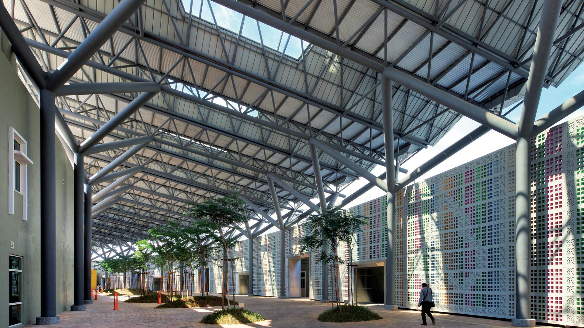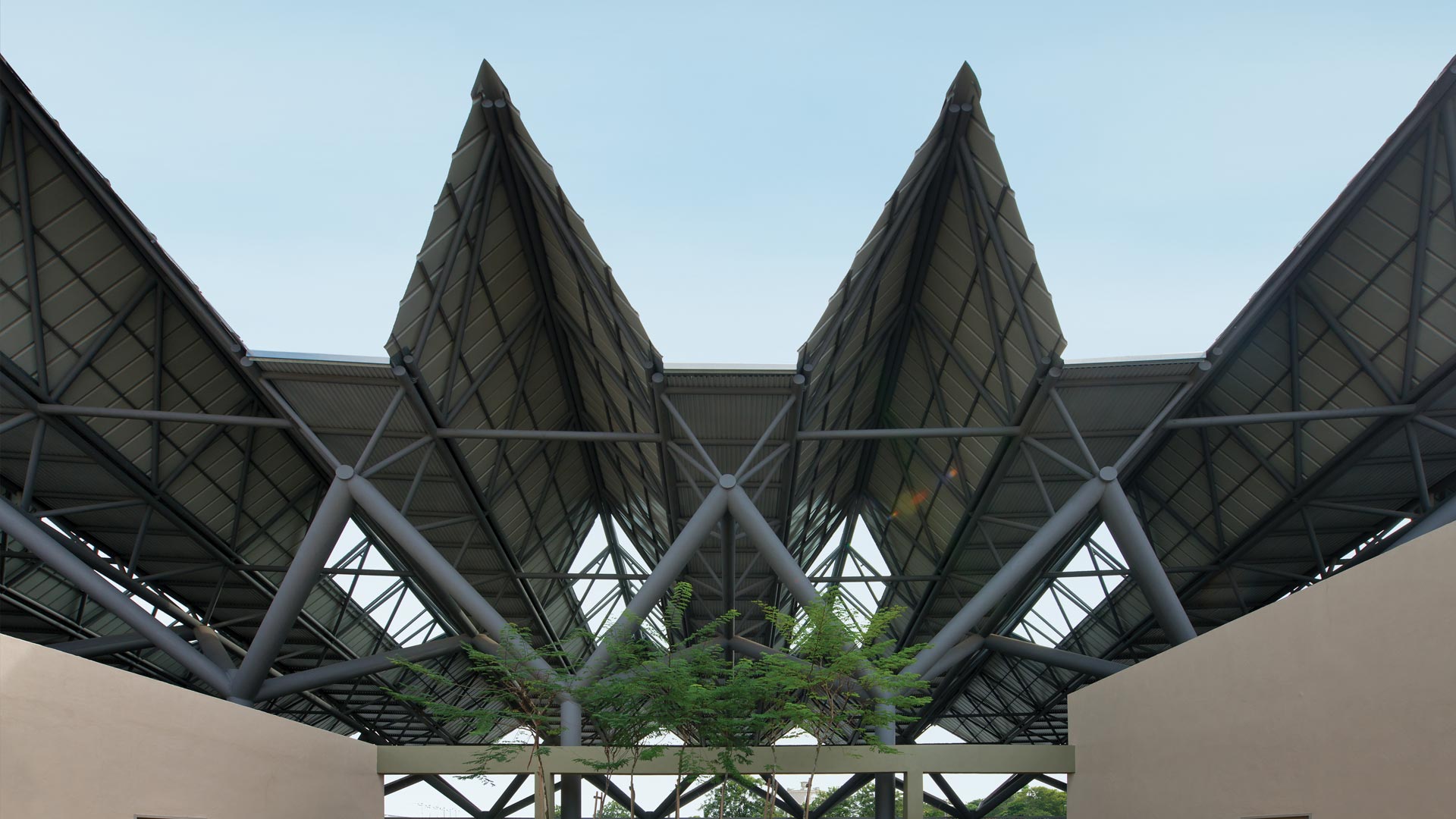 The Complex is configured based on the ‘healing hand’ concept where the non-therapy facilities forming the palm; while the five fingers housed all the therapy blocks. To facilitate the link between these activities within the complex and connection to the primary spine of the rehabilitation centre; a transient space the ‘Sanctuary Garden’ is created. It is expressed architecturally by a signature roof derived from the local Malacca Nyonya fan.